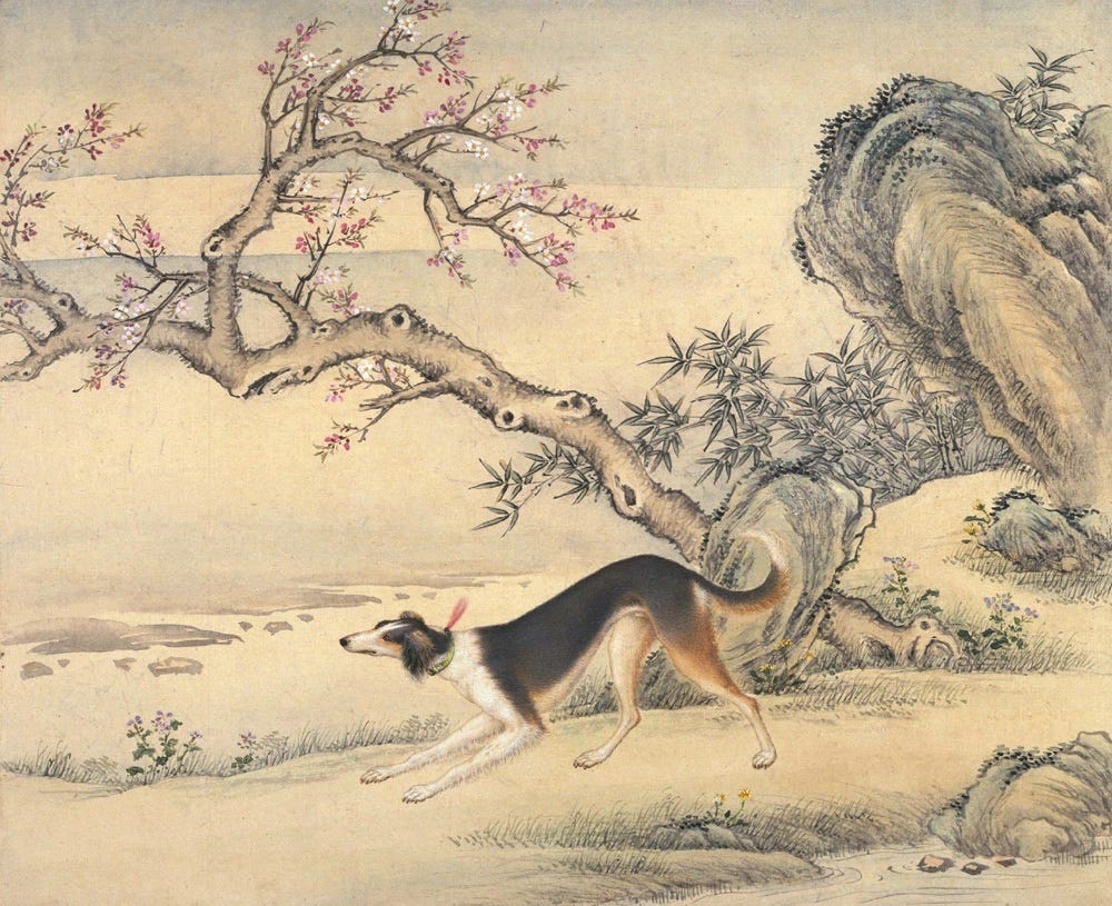 Ignatius Sichelbart really did exist, and really was one of the Jesuits who painted at the Qing court, alongside the better-known Giuseppe Castiglione 郎世寧; he even produced paintings of the Qianlong Emperor’s favorite hunting hounds. The cat portraits look more or less like (my impression of) Castiglione’s style, a fusion of European and Chinese techniques that one very talented Chinese painter friend finds absolutely enraging, but less, to my untrained eye, like Sichelbart’s paintings of the hounds — though some of that could be the lack of a background in the cat portraits, and more of it could just be me not knowing anything.